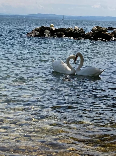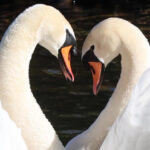 les cygnes tracent des cercles d’amour sur l’eau oscillante,